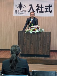 工事部長の國分からは「心の中に桜の苗を植えて、その桜が大きく咲くように頑張ってほしい」と祝辞が贈られました。